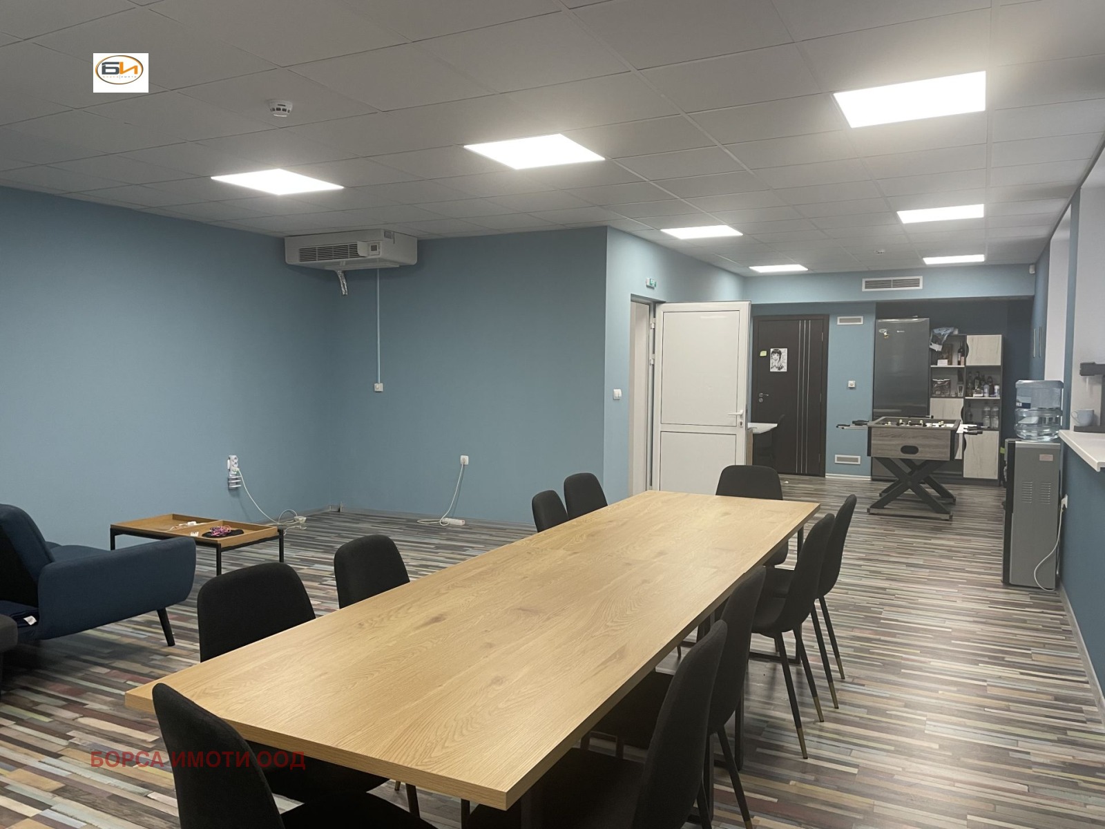 ОФИС ПОД НАЕМ Централна част, 353.50 кв.м., ет.3 в бизнес сграда с асансьор, на 1-вият етаж на сградата е разположен магазин, на 2-рият етаж - офиси, офис етажът под наем се състои от светло и просторно офис помещение, което може да бъде разделено на отделни зони, самостоятелна заседателна зала, кухня, тераса, 2 санитарни възела тоалетна с баня, климатизация и вентилация, газ, отлично състояние, PVC дограма, стени - латекс, под - ламиниран паркет, поддържани общи части на сградата, възможност за наемане на до 4 паркоместа, офисът и паркоместата могат да бъдат наети от 01.08.2026 г., наемна цена - офис етаж - 1 250 Евро без ДДС, 1 бр. паркомясто - 55 Евро без ДДС