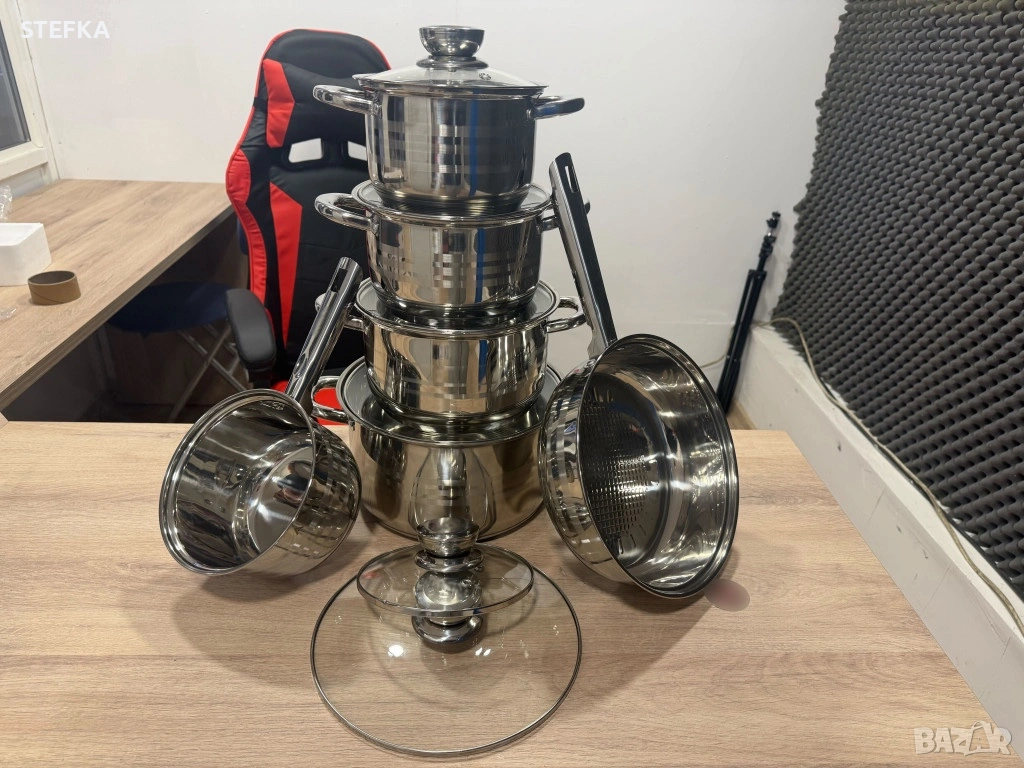 Продавам чисто нов комплект тенджери от висококачествена неръждаема стомана – 12 части с капаци. Подходящи за всички видове котлони. Здрави и удобни дръжки, стилен дизайн и лесни за почистване. Идеални за всяко домакинство.