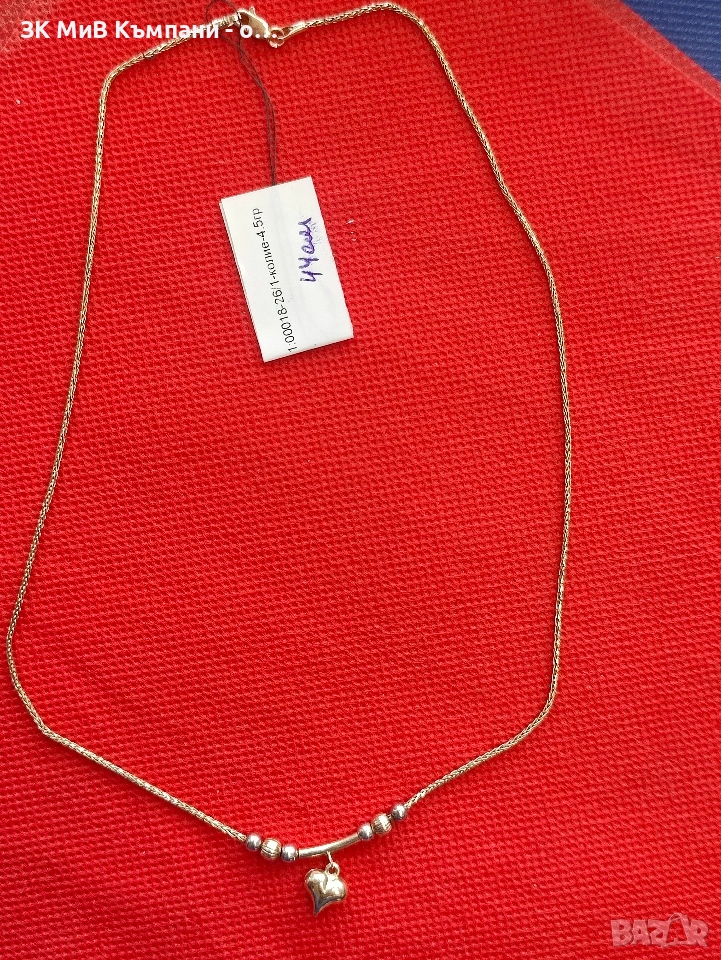 Златно колие с висулка сърце 4.5гр 44см → Обява 53494693