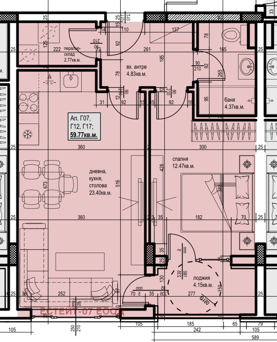 оферта 202.Предлагаме Ви за продажба двустаен слънчев апартамент в ново изграждащ се жилищен комплекс, отличаващ се с модерна визия,състоящ се от четири тела.Комплексът няма да бъде от затворен тип ,но ще разполага с всички удобства на такъв.Представлява хол с кухня-около 24кв.,спалня 13кв.м.,баня 4кв.м.,склад-3кв.м.,тераса лоджия-5кв.м.Чистата жилищна площ е 60кв.м.За повече информация и огледи 0897913101.