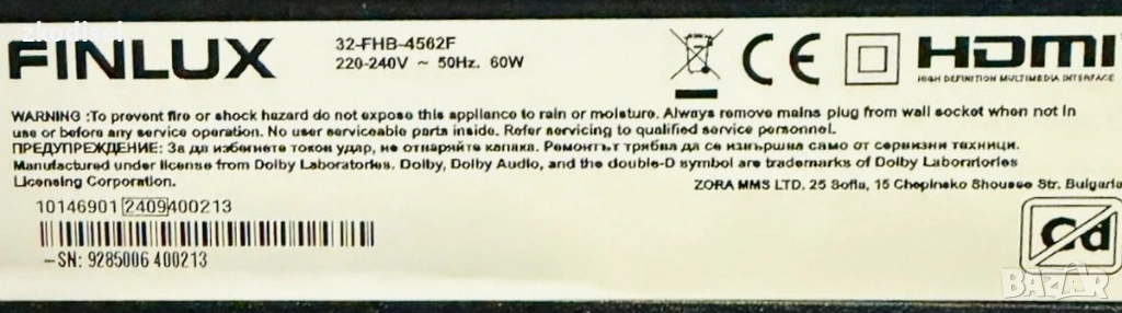 LED TV FINLUX 32FHD4562F 32 Инча → Обява 53494884