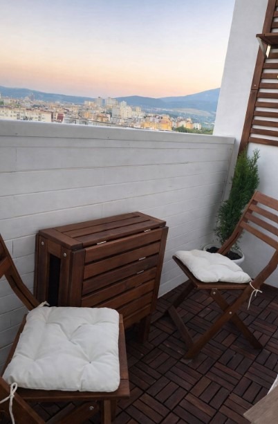 Имотът е обзаведен, с площ 46 кв.м, на 11-ти от 16 етажа в сграда с асансьор. Разпределението включва входно антре, хол с кухня и трапезария, спалня, баня с тоалетна, мокро помещение и тераса.