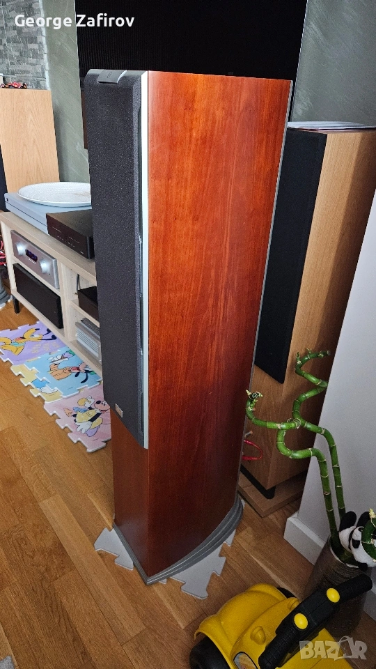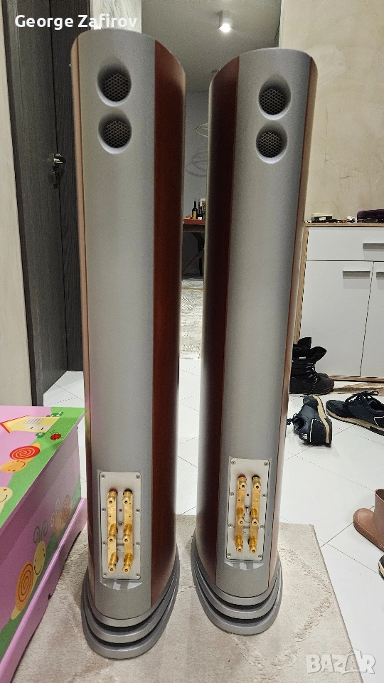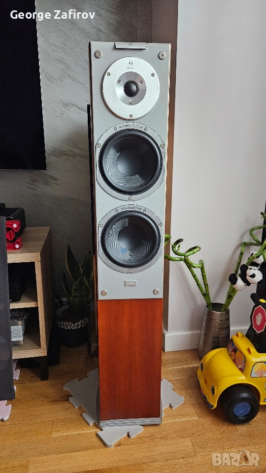 Продава се премиум акустика Audiovector SI3 Signature ръчно изработена в ДАНИЯ цвят кестен. Изглеждат и звучат супер. Колониите са в отлично състояние. Имат няколко алки драскотини по корпуса, които не съм се опитвал да отстранявам. Имат и малки пукнатини от долната страна на стойката, които съм снимал и които не се отразяват по никакъв начин на стабилността и звука им. Колоните са много масивни и същевременно компактни като обем. Звукът им е много деликатен и прецизен със стабилен и ударен бас и имат много широка звукова сцена. Подходящи са и за по-малки помещения, като насоченият надолу порт ги прави много подходящи за поставяне близо до стена. Продавам ги защото ги замених с още по-компактни колони с порт насочен надолу - Pro act (поради недостатъчно място за слушане). Намират се в София. Имат си и оригиналните шипове за под и оригинални джъмпери.