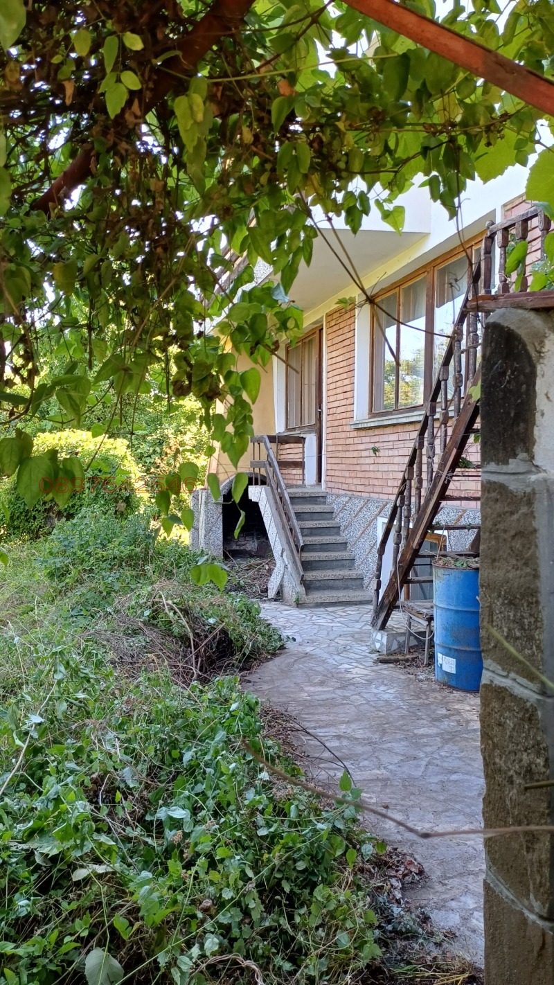 Гараж и място за втора кола с метални врати към улицатал. къщата е на два етажал На първия има две стая , кухня, баня с тоалетна и коридор със стълби към мазе - две помещения- си втори етаж. Та има две стаи , с тераса, коридор с тераса и килер. В двора има широк масивен навес зидан камък , голяма външна камина ,огнище- и закрита веранда. Оглед при предваритена уговорка.
