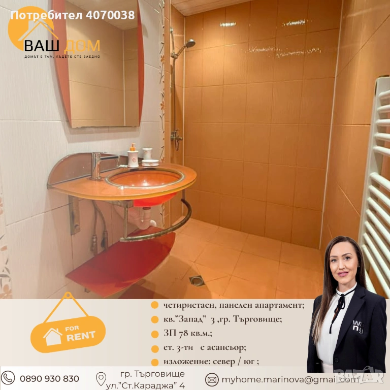 четиристаен панелен апартамент → Обява 53495470