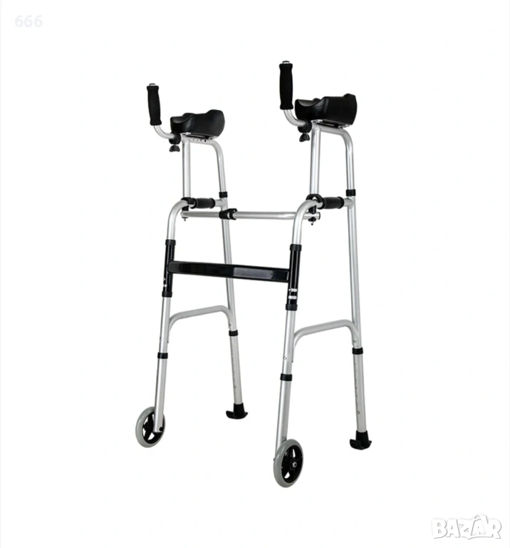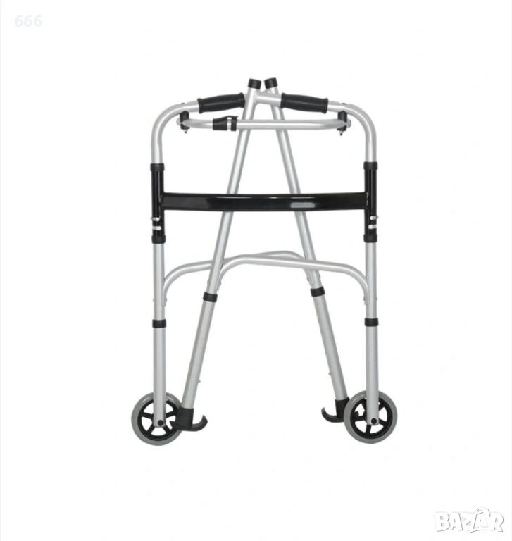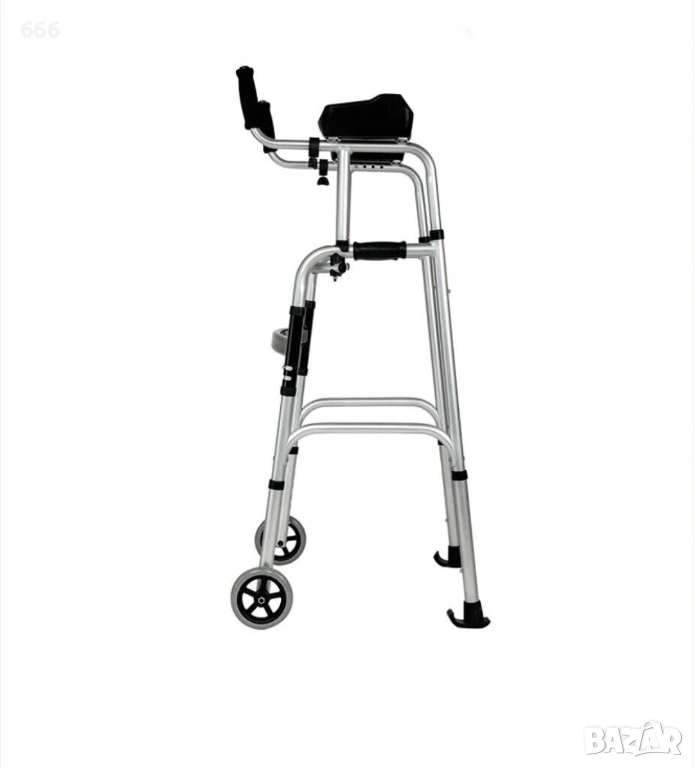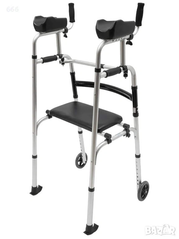 Сгъваема регулируема изправена проходилка с ролатори, с опора за ръце и 2 колела.