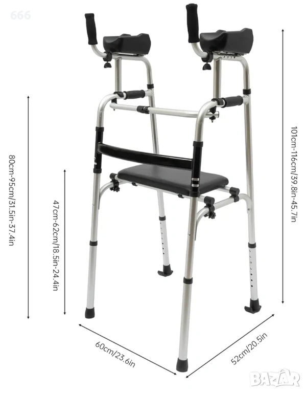 РЕГУЛИРУЕМ ДИЗАЙН: Проходилката е с регулируема височина със 7 позиции на интервали от 2 см (0,78"), за да се побере на потребители с различна височина. Подлакътниците могат да се регулират напред и назад, за да се гарантира удобното разположение на ръцете на потребителя.