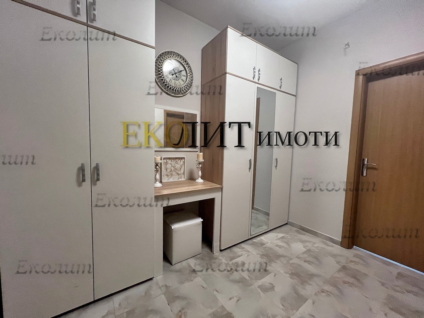 Разпределението включва входно фоайе с портманто, кът за сядане и големи гардероби за външни дрехи и обувки.