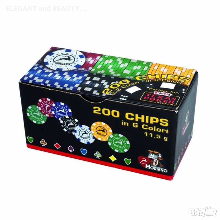 Комплект 200 покер чипа Модеано → Обява 53495628