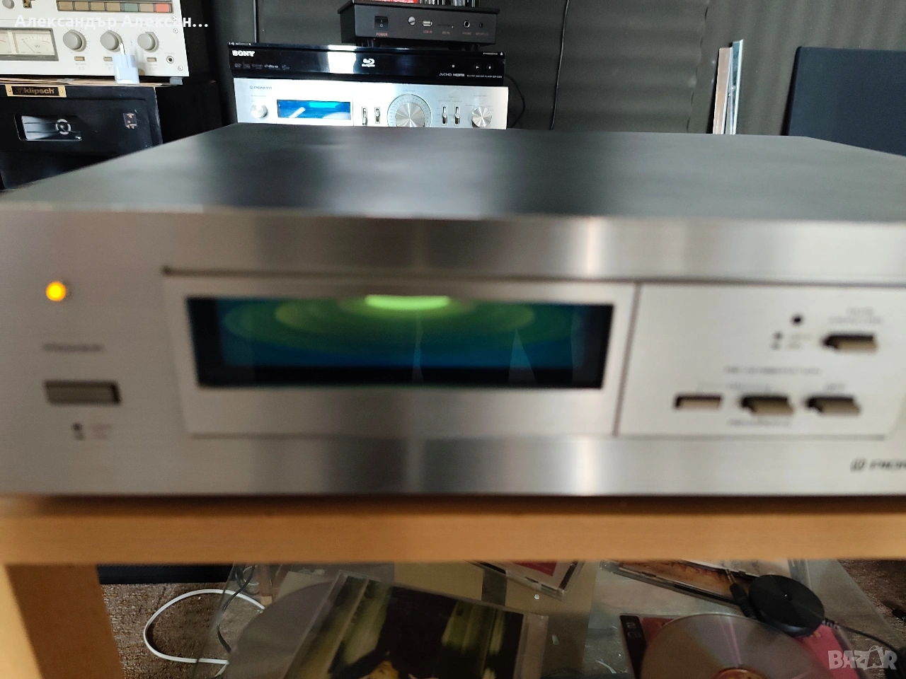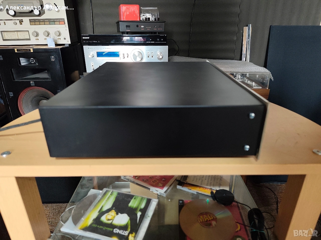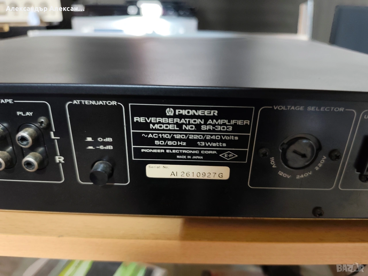Pioneer SR-303 Цена:320евро Тел:+359889589471 В много добро състояние. Работи нормално. Има забележка само на горен ляв ръб. Капака е перфектен. При интерес може да се види и чуе в София!!! Pioneer SR-303 е реверберационен усилвател от „Blue Line“ серията на Pioneer, произвеждан в началото на 80-те години. Той използва електронна технология „bucket brigade“ (BBD) за добавяне на ехо, реверберация или дует ефект към аудио сигнала, осигурявайки 90dB съотношение сигнал/шум. Устройството е известно с характерния си светещ дисплей, работещ перфектно с източници като микрофони или грамофони. Основни характеристики и функции: Тип: Електронен реверберационен усилвател (немеханичен, устойчив на вибрации). Ефекти: Реверберация (0-3s, ефект 1) и Ехо/Дует (25-100m/s, ефект 2). Дисплей: Анимиран, светещ дисплей на предния панел (Blue Line). Честотна характеристика: до . Технология: BBD (Bucket Brigade Device) и C-MOS IC. Сигнал/Шум: .