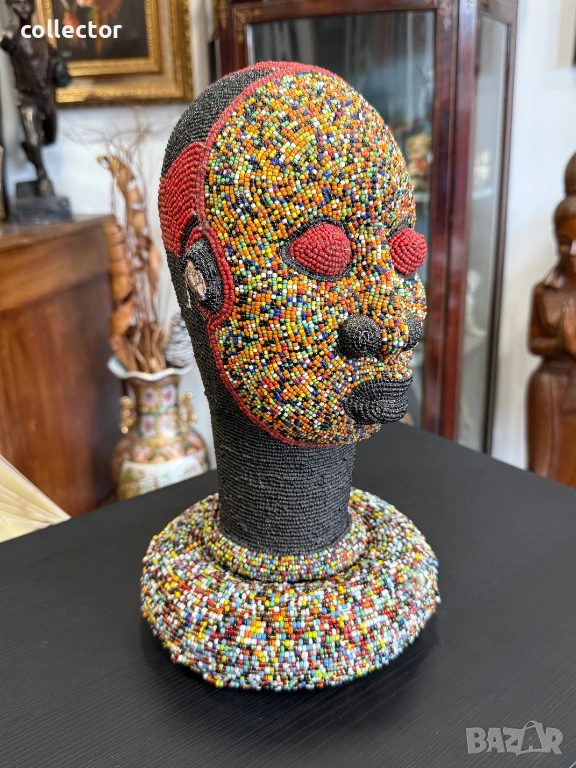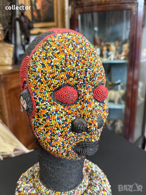 Произход - Камерун, Централна Африка, племе - Бамилеке. В културата Бамилеке тези глави не са просто украса, а символи на престиж и власт.