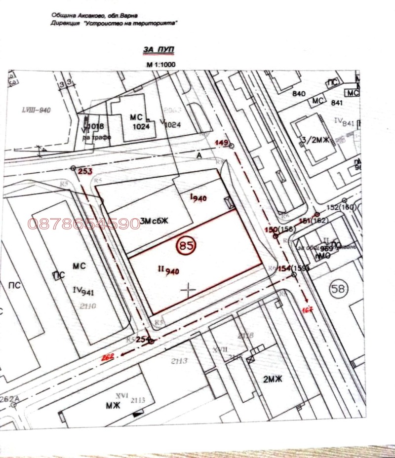 Изработен е проект за ПУП с градоустройствени показатели плътност до 80%, К.инт. до 2.5 и к.к. 10м / 3+1 ет., за строеж на свободно стояща сграда с размери 43м/23м, с необходим отстъп от 4 ценни дървета в южния ъгъл на терена. Полезна денивелация до 3.00м от тротоара на булеварда.