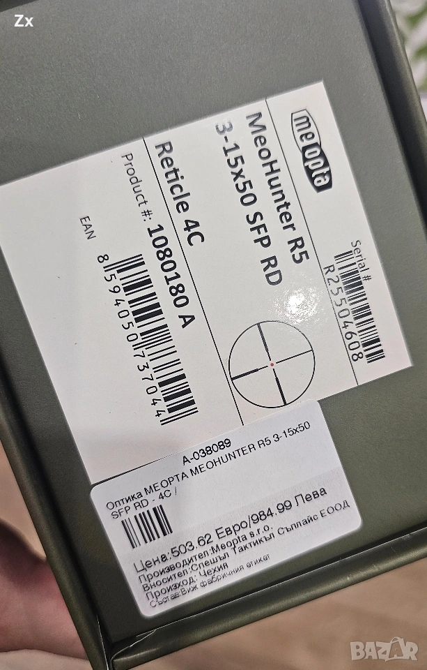 Продавам оптика MЕОРТА MEOНUNTЕR R5 3-15x50 SFP RD-4C 410€
