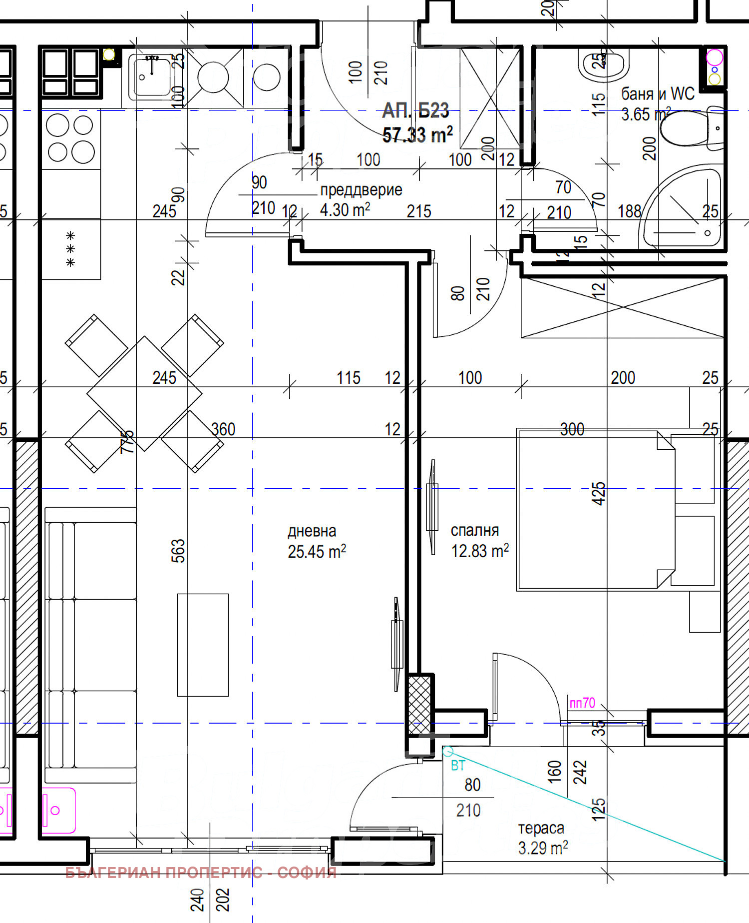 Дневна с кухненски бокс 25.45 кв.м