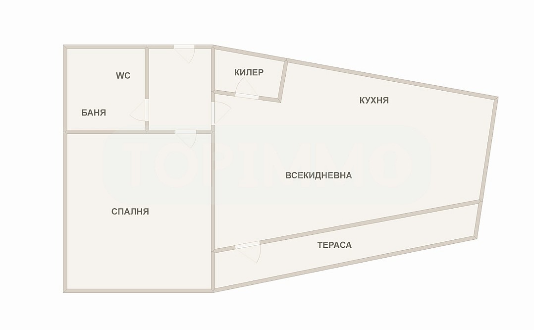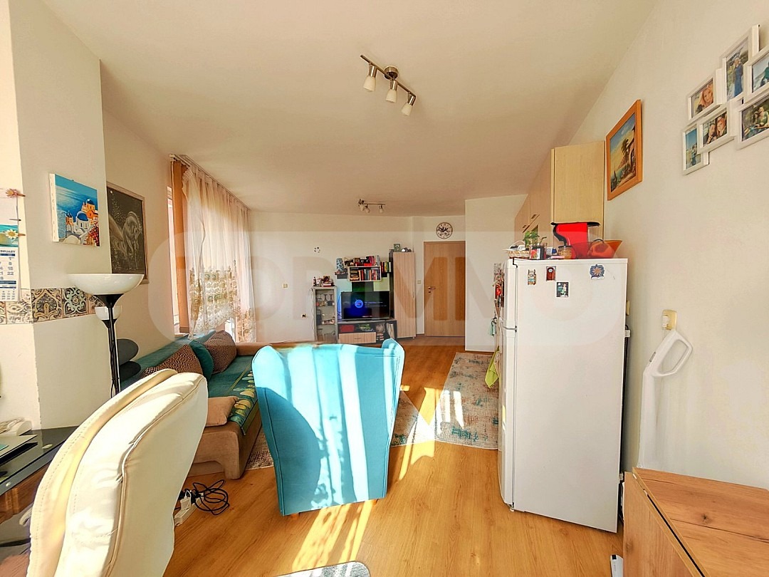 Разположен на втори етаж от пететажна тухлена сграда с асансьор, с югозападно изложение и със следното разпределение: антре, всекидневна с кухн. част с излаз на тераса гледаща към вътрешния двор, светла и просторна спалня, санитарен възел и килер.