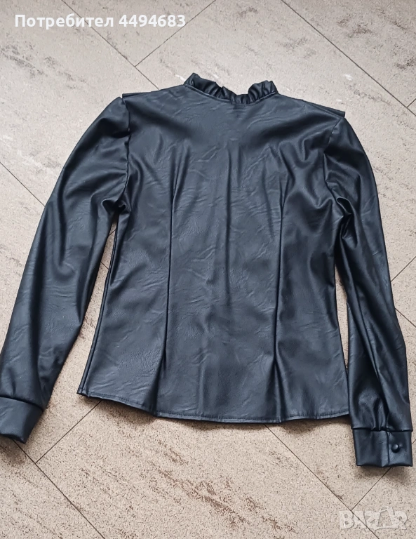 Чисто нова дамска кожена риза с дълъг ръкав,размер s в черен цвят