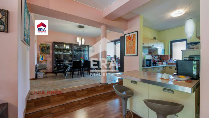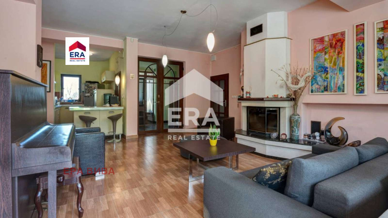 ЕКСКЛУЗИВНО! ЕРА ВИВА София продава луксозна къща във в.з. Киноцентър, гр. София. Къщата е на три етажа със сутерен. На сутеренното ниво са ситуирани: гараж за три коли,вътрешен басейн с подгряване и опция поток, парна баня, баня с тоалетна, модерен фитнес, баня с тоалетна, билярдна зала/винарна, сервизно помещение и антре. Всички помещения са светли! На първи етаж има: антре, два отделни дневни къта, трапезария, кухненски бокс, камина с въздушна възглавница, тоалетна, работен кабинет, балкон и огромна тераса юг с барбекю. На втори етаж са ситуирани: четири отделни спални с бани с тоалетни и тераси,коридор. На трети етаж имаме просторен двустаен апартамент. Всички помещения са луксозно завършени с под от черен гранит и дървен паркет и декинг. Стени и тавани с латекс, обзаведени с мебели от скъпи производители. Има отделна къща за охраната с две стаи. Цялата сграда е с термопомпа 17kW, собствен трафопост, фотоволтаик 20 kW, нафтово стопанство с дизелов агрегат, оптичен кабел за интернет.
