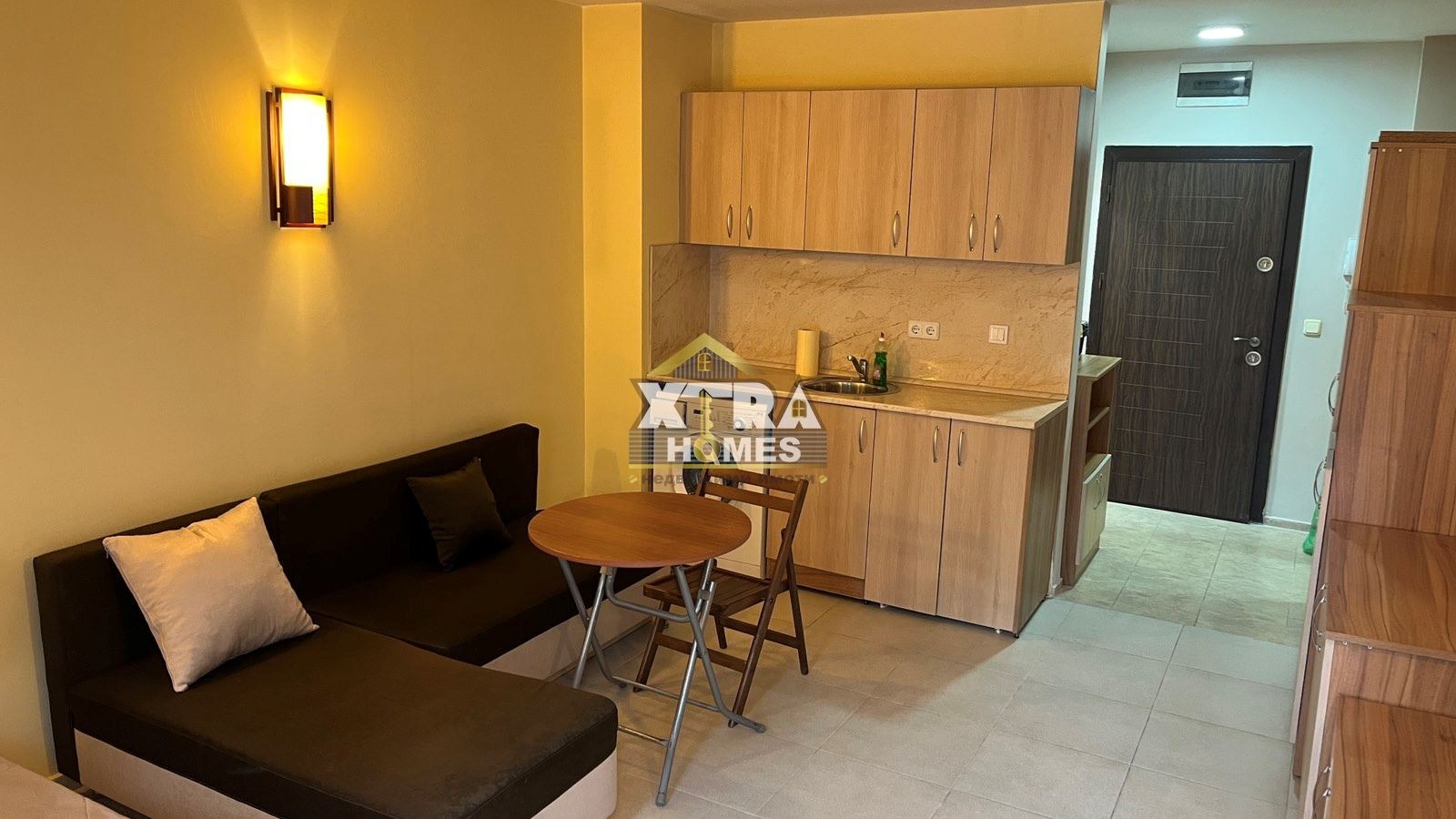 Разпределение: входно антре, просторна и светла стая с обособени дневен и спален кът, кухненски бокс, баня с тоалетна и голяма тераса (12 кв.м).