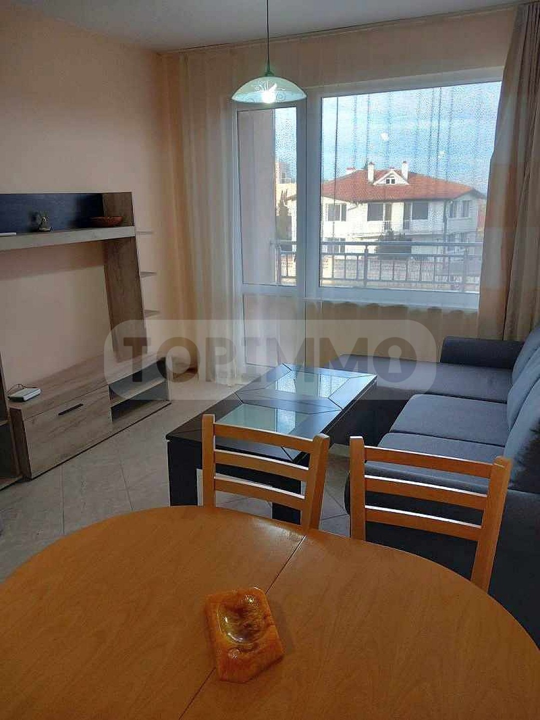 ТОПИММО предлага под наем двустаен напълно обзаведен апартамент в затворен комплекс с поддържан и озеленен двор, басейн, нескриваема гледка към града.