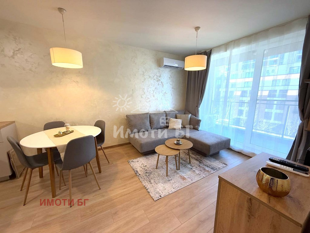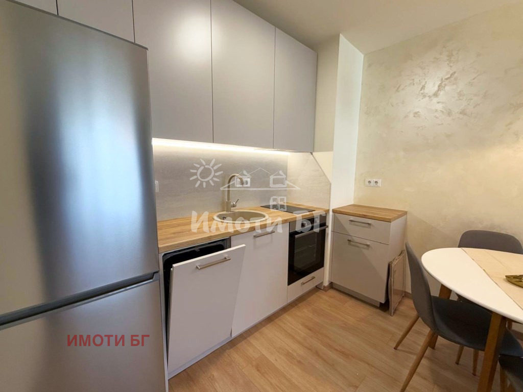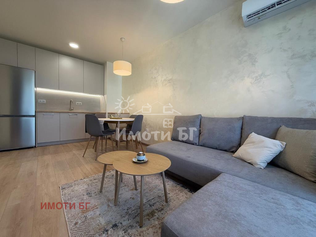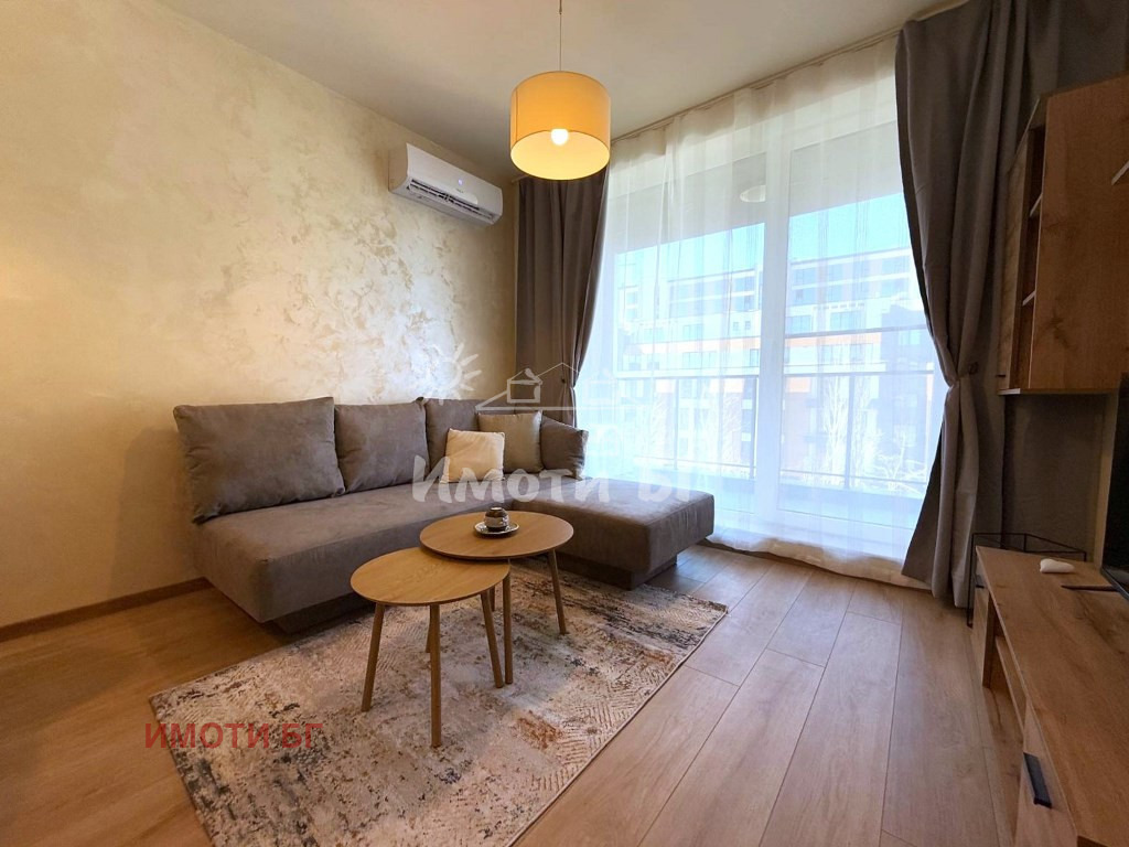 Разпределение: входно антре, хол с кухненски бокс и трапезария, спалня, баня с тоалетна и тераса. Предлага се изцяло обзаведен и завършен по дизайнерски проект, като на разположение на наемателите има: ПЕРАЛНЯ СЪС СУШУЛНЯ, кухня с вградени уреди, включително СЪДОМИЯЛНА МАШИНА, интелигентно газово котле с WiFi и ПОДОВО ОТОПЛЕНИЕ, климатик с WiFi, 2 БРОЯ ТЕЛЕВИЗОРИ 43' (в хола и в спалнята), blackout пердета и др.