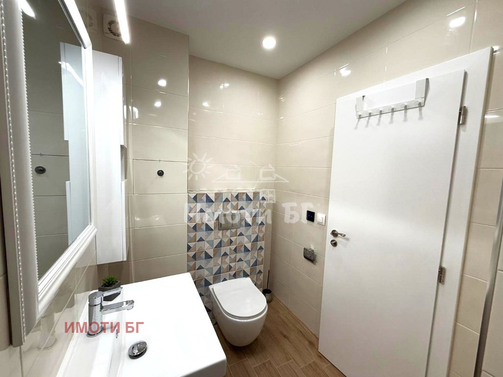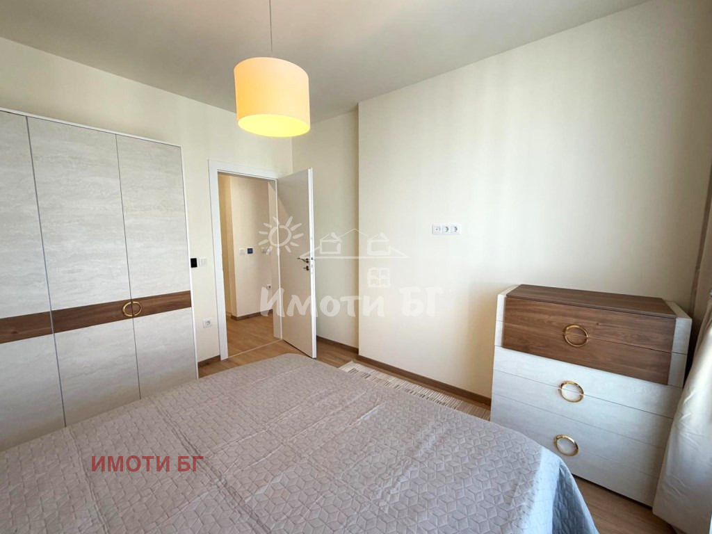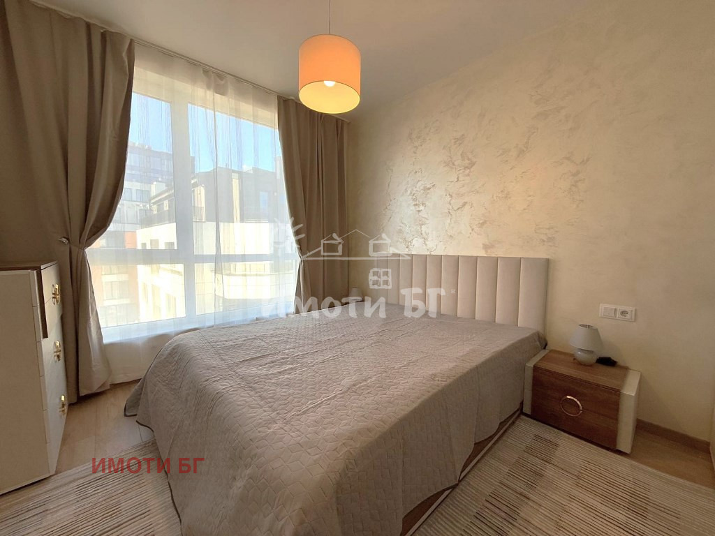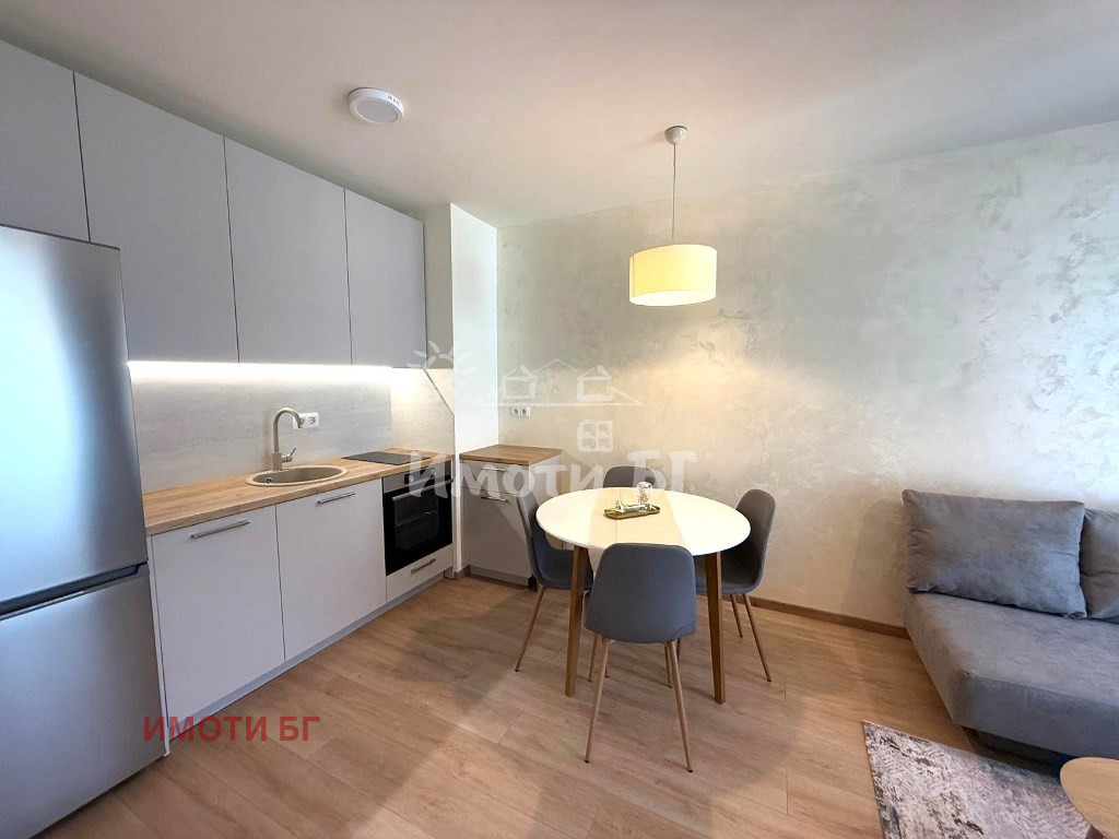 Разпределение: входно антре, хол с кухненски бокс и трапезария, спалня, баня с тоалетна и тераса. Предлага се изцяло обзаведен и завършен по дизайнерски проект, като на разположение на наемателите има: ПЕРАЛНЯ СЪС СУШУЛНЯ, кухня с вградени уреди, включително СЪДОМИЯЛНА МАШИНА, интелигентно газово котле с WiFi и ПОДОВО ОТОПЛЕНИЕ, климатик с WiFi, 2 БРОЯ ТЕЛЕВИЗОРИ 43' (в хола и в спалнята), blackout пердета и др.