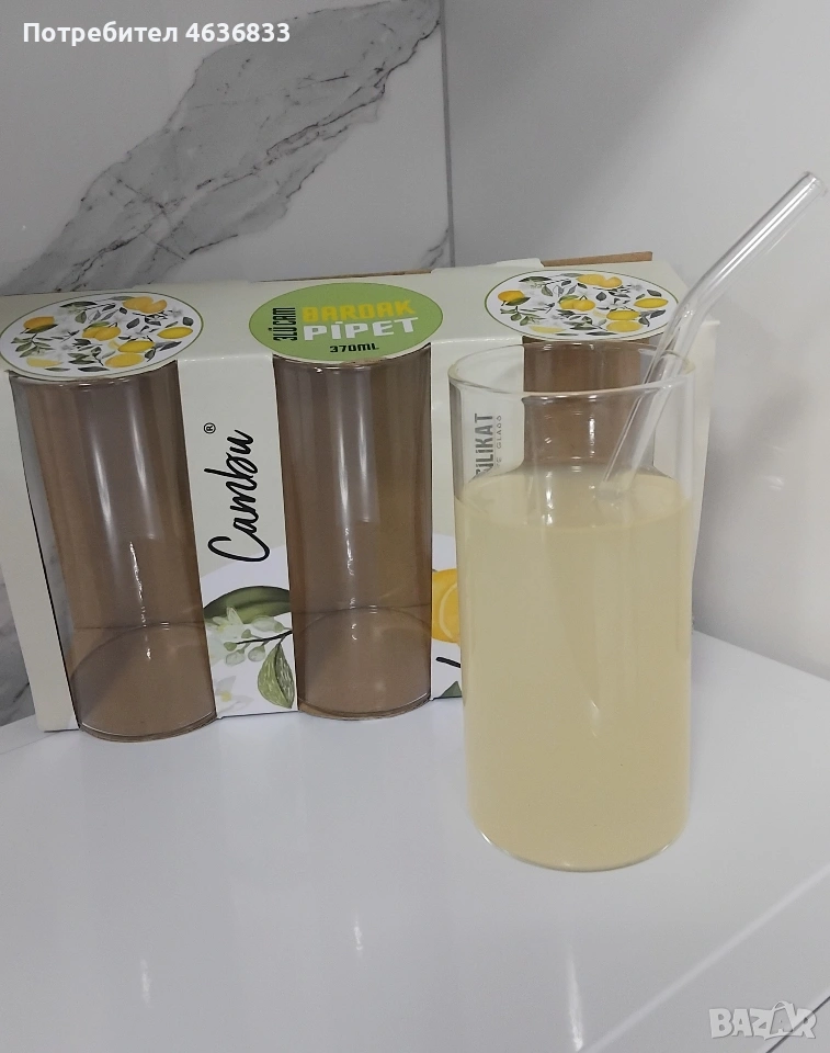 Комплект 3 бр. боросиликатни чаши със стъклени сламки → Обява 53496794