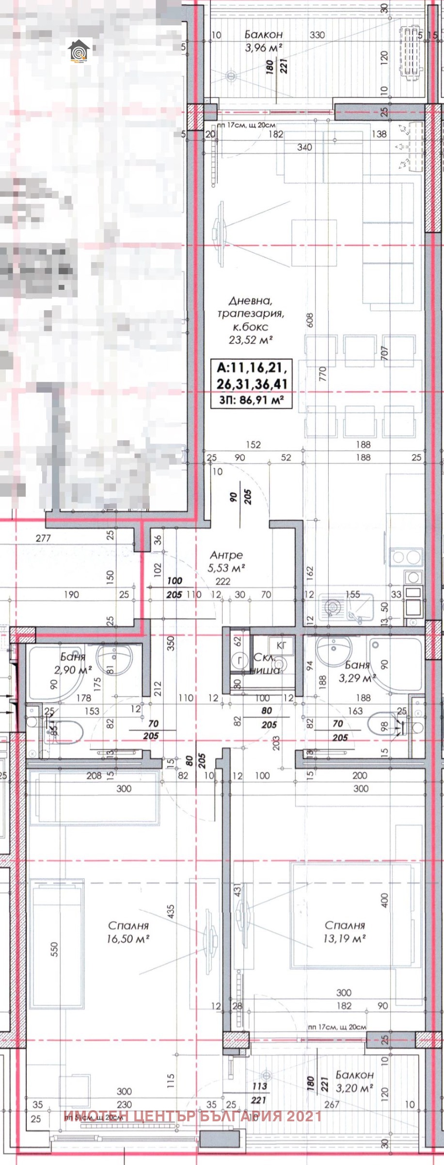 Чиста жилищна площ: 86,91 кв.м