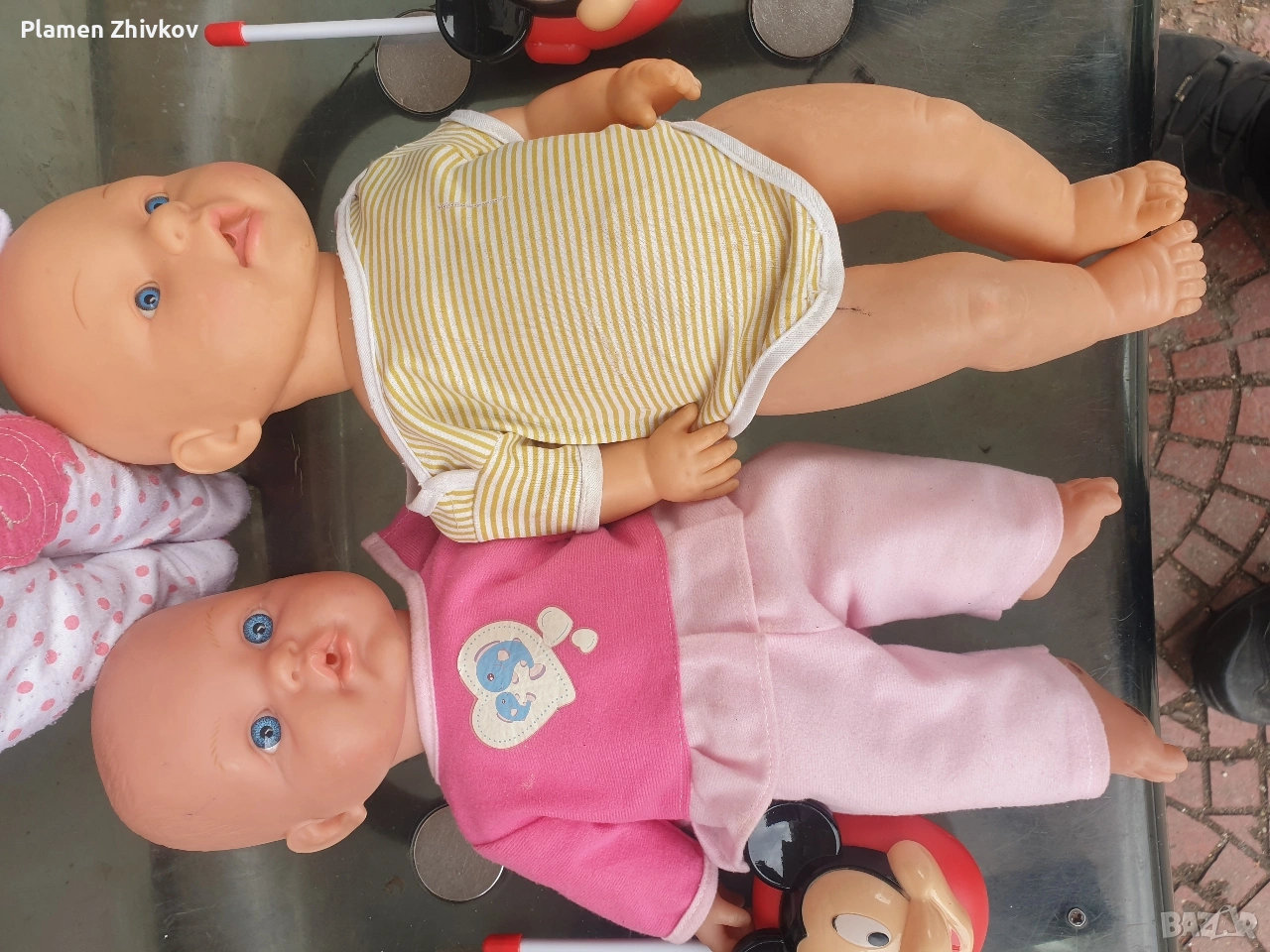 три стари кукли , няколко комплекта дрешки и комплект Мики Маус бейби център → Обява 53496896