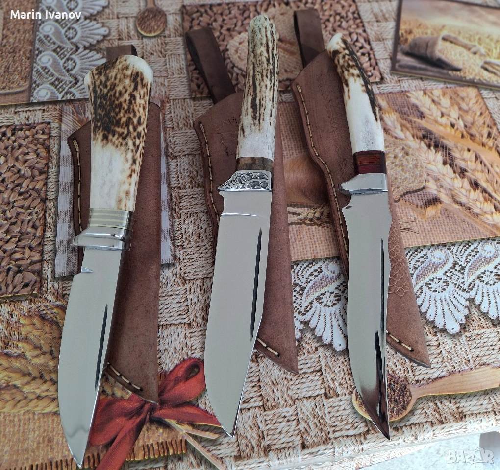 ръчно ковани ножове стомана 440ц дръжка еленски рог цени от 70до 100евро