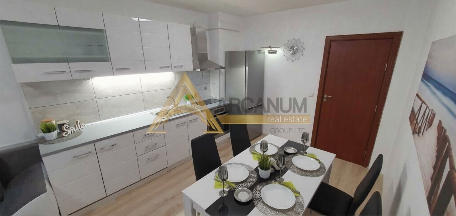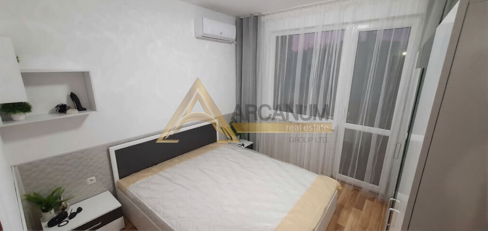 Арканум Груп недвижими имоти , предлага под наем тристаен апартамент в квартал Трошево. Жилището е напълно луксозно обзаведено с нови мебели и електроуреди и е оборудвано с всичко необходимо за едно домакинство.Апартамента се намира на висок първи жилищен етаж.