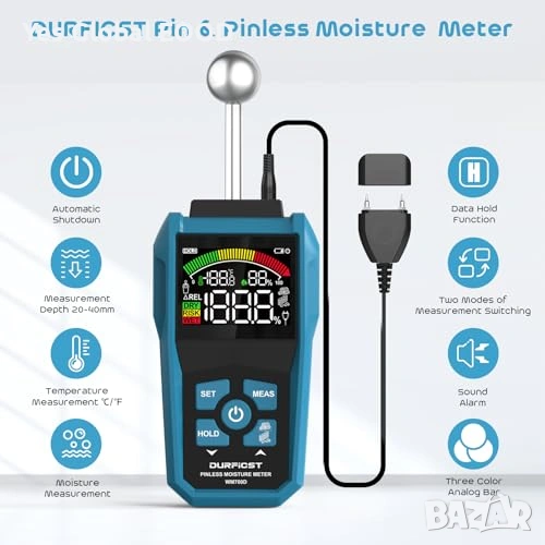 DURFICST влагомер Pin/Pinless с цветен LCD и аларма