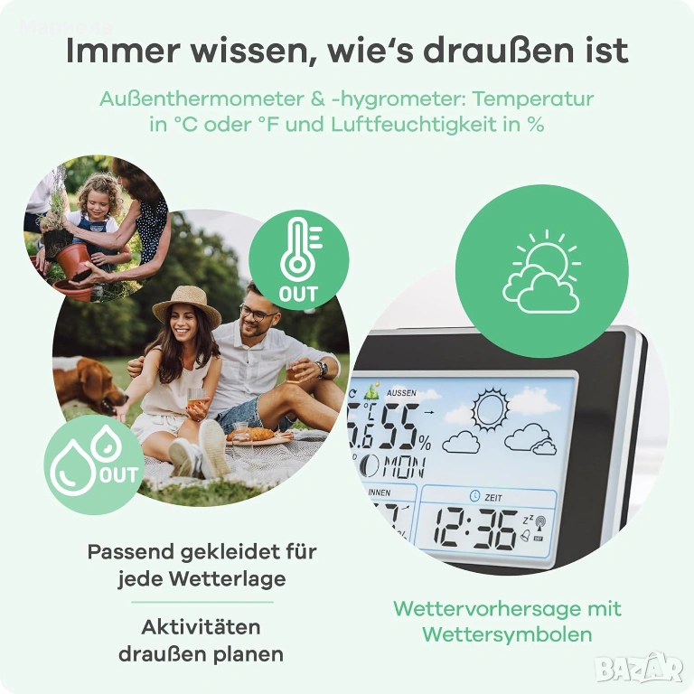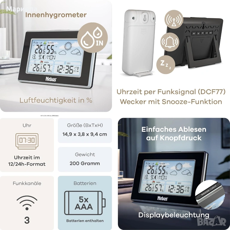 Метеорологична станция с Mebus с външен сензор / Радиоуправляема Метеорологична Станция, снимка 1 - Други стоки за дома - 53497236  Метеорологична станция с Mebus с външен сензор / Радиоуправляема Метеорологична Станция, снимка 2 - Други стоки за дома - 53497236  Метеорологична станция с Mebus с външен сензор / Радиоуправляема Метеорологична Станция, снимка 3 - Други стоки за дома - 53497236  Метеорологична станция с Mebus с външен сензор / Радиоуправляема Метеорологична Станция, снимка 4 - Други стоки за дома - 53497236  Метеорологична станция с Mebus с външен сензор / Радиоуправляема Метеорологична Станция, снимка 5 - Други стоки за дома - 53497236  Метеорологична станция с Mebus с външен сензор / Радиоуправляема Метеорологична Станция, снимка 6 - Други стоки за дома - 53497236 1/6