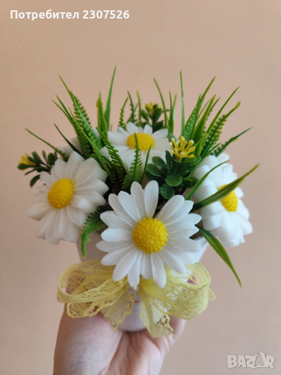 Кашпа с глицеринови маргаритки и добавен аромат за всеки повод