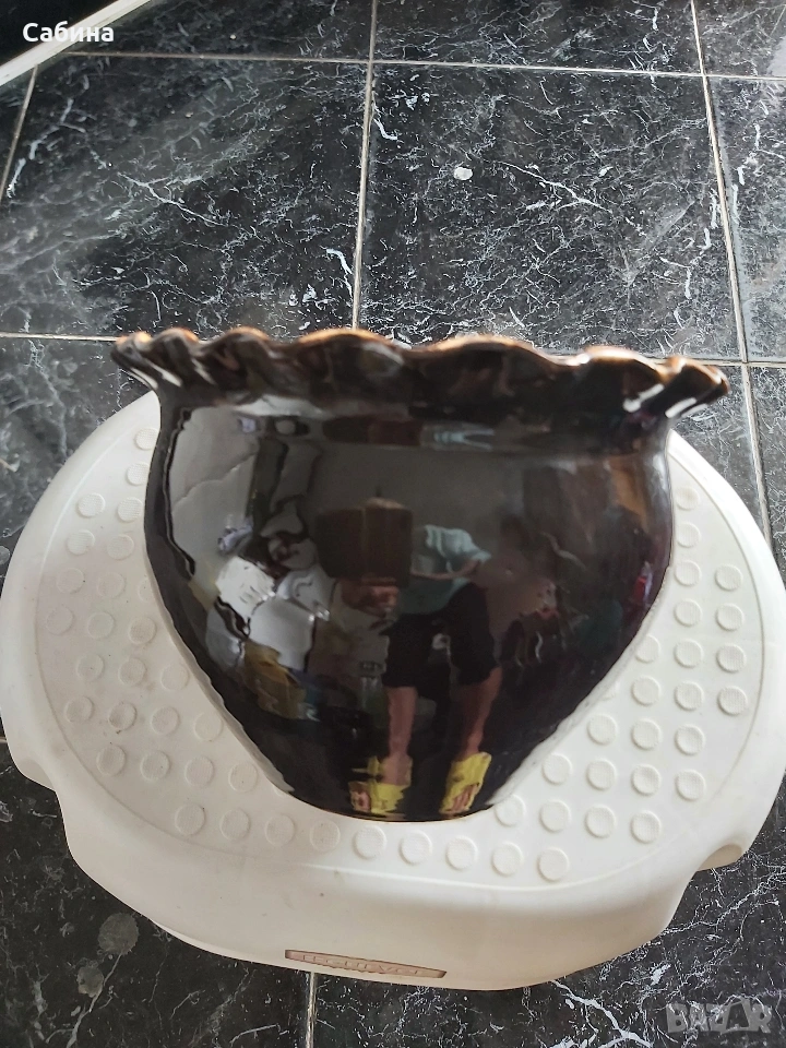 Керамична кашпа в приятна шоколадово-кафява глазура. Диаметър 22 см.