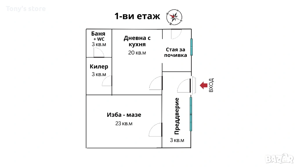 Къща: площ (ЗП) ≈120 кв.м.