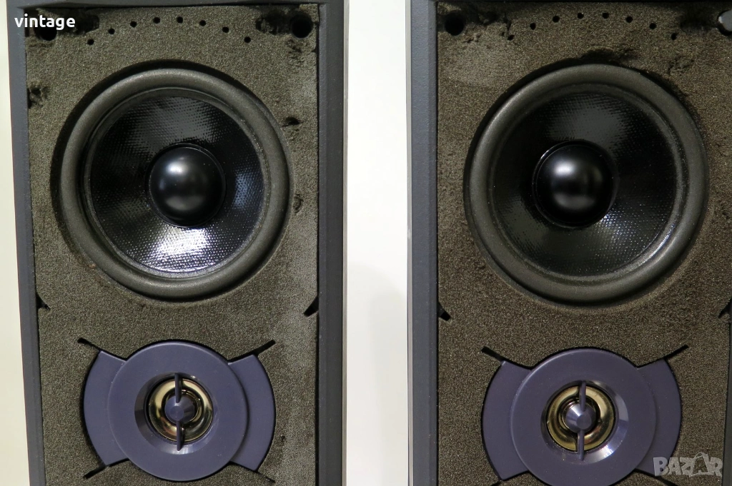 Двулентови озвучителни тела, сателити, тип на конструкцията отворен обем с предно разположен фазоинвертор/басрефлекс. Отлични технически, добър външен вид. Приложените снимки и видео са реални!