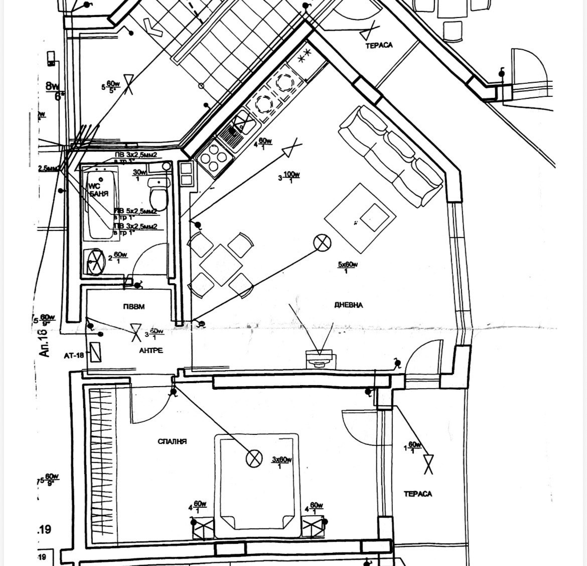 -- Обща тераса между хола и спалнята;