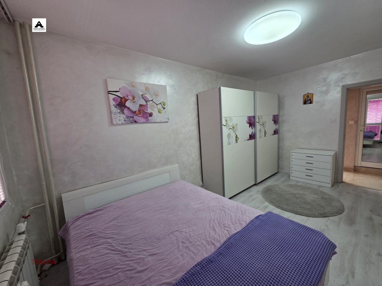 - Просторна спалня с излаз към остъклен балкон;