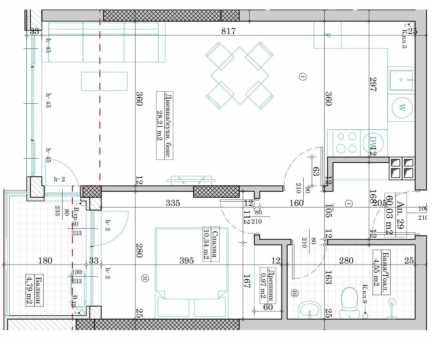 ЕРА Вива продава двустаен апартамент в новострояща се жилищна сграда в кв. Левски, гр. Варна. Жилището е със застроена площ от 60.03 кв.м. /69.69 кв.м. с общите части/ и е разположено на пети етаж. Имотът е функционално разпределен, включващ просторна дневна с кухненски кът /28.21 кв.м./, спалня с дрешник /11.31 кв.м./, баня с тоалетна /4.55 кв.м./ и балкон /4.79кв.м./. Стаите са светли, с правилни форми. Степен на завършеност по БДС - на шпакловка и замазка, с поставена ПВЦ дограма и блиндирана входна врата. Отоплението е предвидено на ток. Mодерна новострояща се сграда, която ще впечатли с изключителен стил и качество. Сградата ще разполага с асансьор и домофонна система за удобство и сигурност на живущите. Освен това, има възможност за закупуване на открито или закрито паркомясто. Използваните материали и технологии са съобразени с последните иновации в строителния бранш, гарантирайки устойчивост и енергийна ефективност. Очаквано въвеждане в експлоатация май 2026 г. Район с отлично изградена инфраструктура. В близост до УМБАЛ Света Марина, Втори корпус на Икономически университет, детска градина, магазини, ателиета за услуги и спирки на градския транспорт.