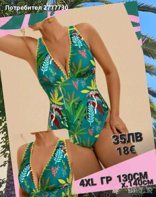Бански 4XL  гр 130см х 140см , снимка 1 - Бански костюми - 53497970 Бански 4XL  гр 130см х 140см , снимка 2 - Бански костюми - 53497970 1/2