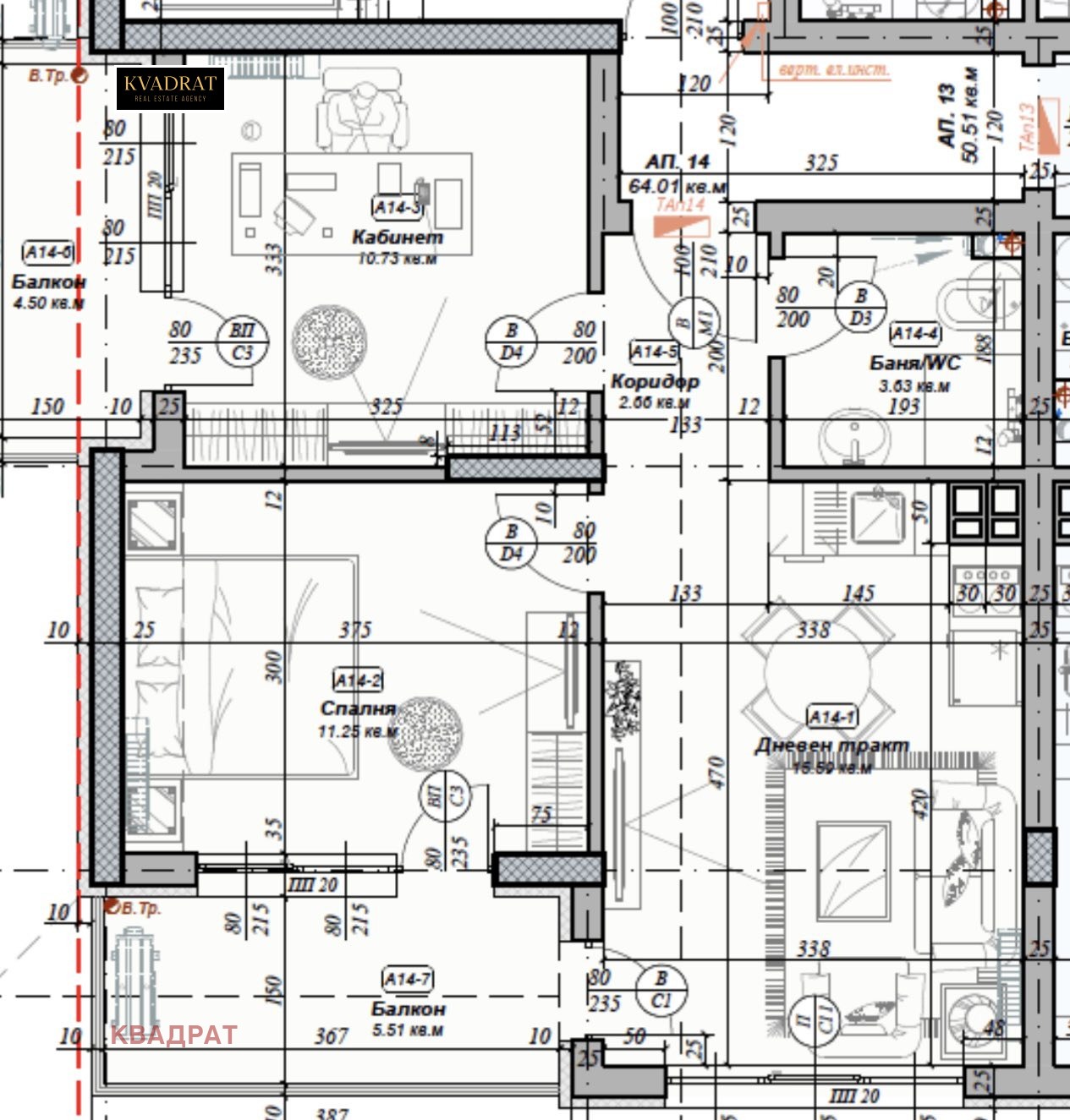 Апартаментът представлява модерен и функционално разпределен имот, разположен на 4-ти етаж от 6 в нова тухлена сграда с Акт 16 от 2025 година.