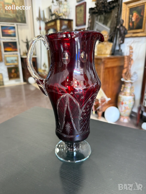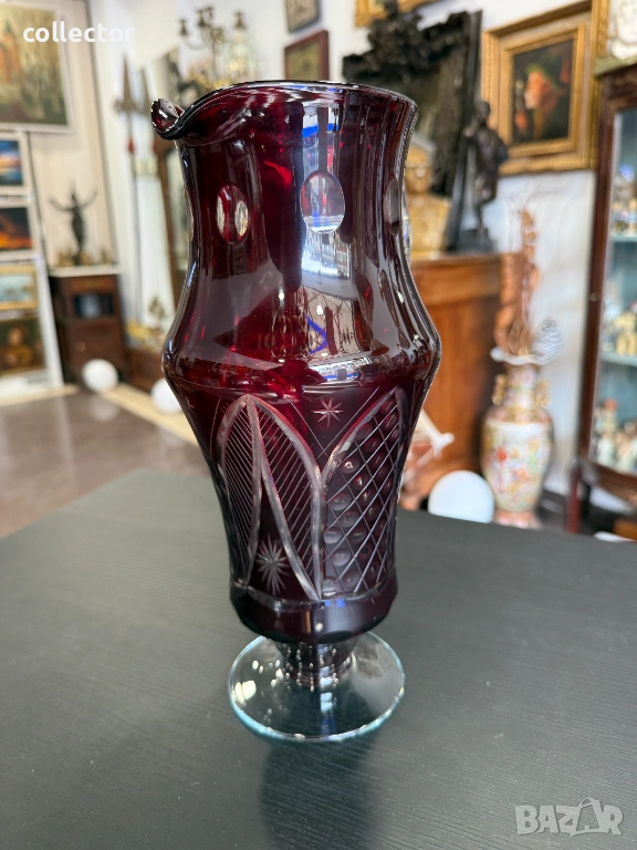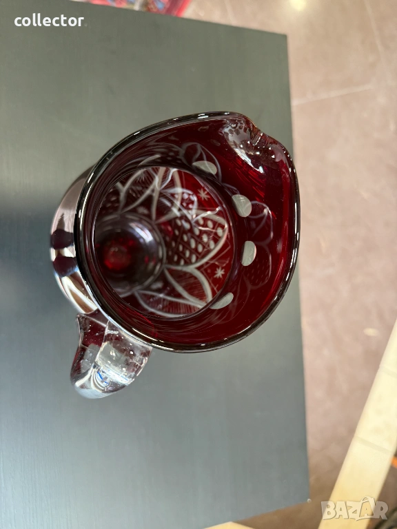 Изработена е от рубиненочервен кристал. Този тип стъкло се създава чрез наслояване на тъмен рубинен слой върху прозрачен кристал, след което горният слой се изрязва ръчно, за да разкрие прозрачната основа.