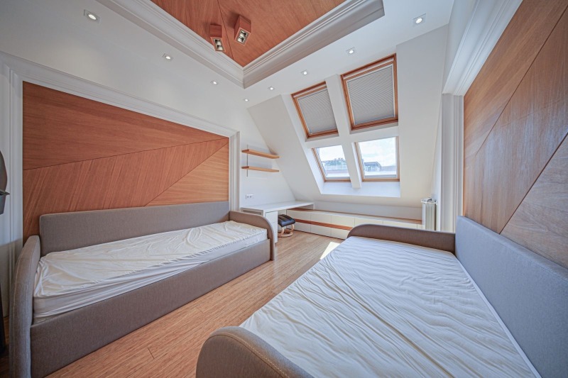 The apartment has a total area of 176.36 sq.m and is situated on the sixth floor. It features panoramic windows and beautiful views of Vitosha Mountain and the internal park of the complex. The property is exceptionally bright, with a modern design, clean architectural lines and high-quality materials and furniture, creating a sense of space, comfort and elegance.