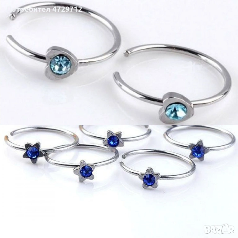 Обици за поставяне на носа с цирконий → Обява 53498277