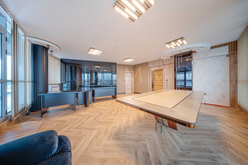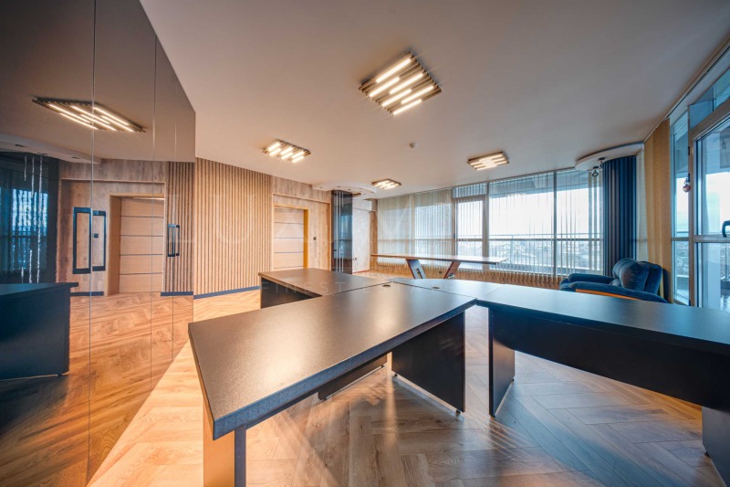 Имотът е изпълнен със съвременни интериорни решения и висококачествени материали, които създават представителна и професионална работна среда. Подходящ е за компании, търсещи престижна локация, добра видимост и удобства за своя екип.