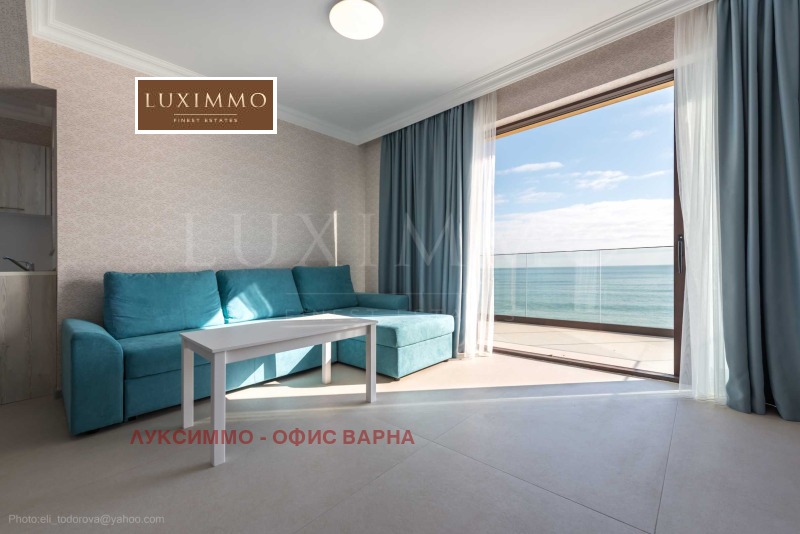 Апартаментът се намира на 3-ти етаж в бутикова сграда с басейн и удобства, на самия морски бряг.