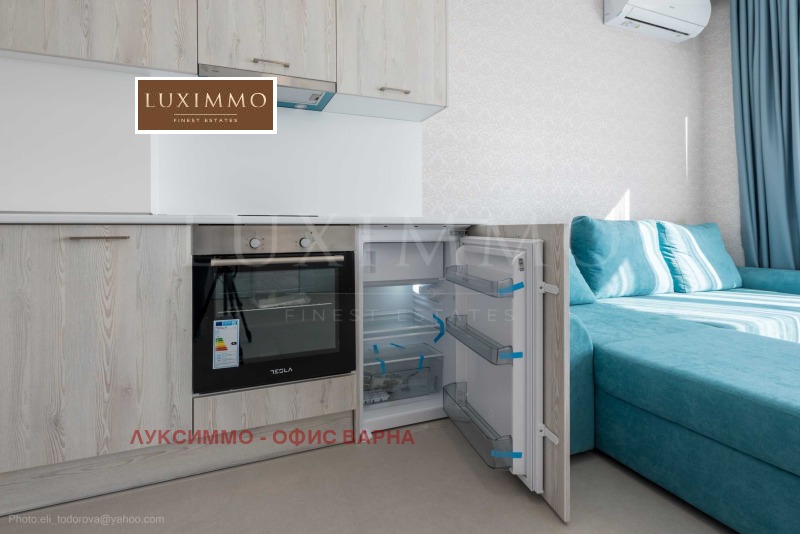 Апартаментът се намира на 3-ти етаж в бутикова сграда с басейн и удобства, на самия морски бряг. Сградата е разположена непосредствено до малък плаж.