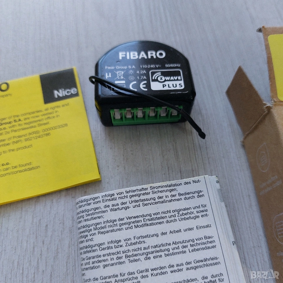 Продавам FIBARO Roller Shutter 3 – един от най-надеждните и висококачествени модули за автоматизация на ролетни щори, сенници, тенти и гаражни врати. Този компактен Z-Wave модул превръща всеки стандартен двигател с променлив ток (AC) в смарт устройство, което можете да управлявате от вашия телефон, гласов асистент или чрез автоматизирани сценарии.