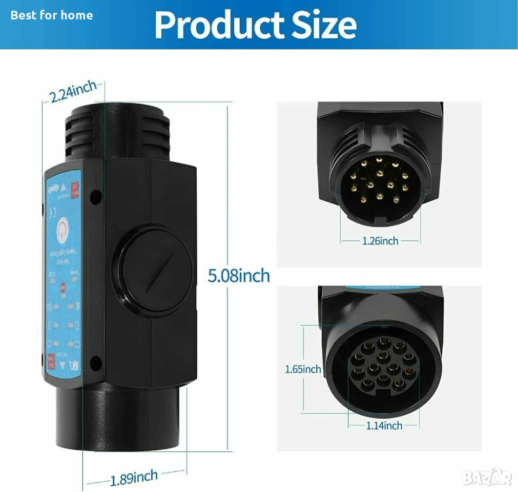 Бързо и лесно -- Единият край е свързан към 13-пиновия щепсел на ремаркето, а другият край е свързан към 13-пиновия контакт на превозното средство. Този 12-волтов тестер е лесен за употреба и незабавно показва грешка в окабеляването на теглещи превозни средства и ремаркета.