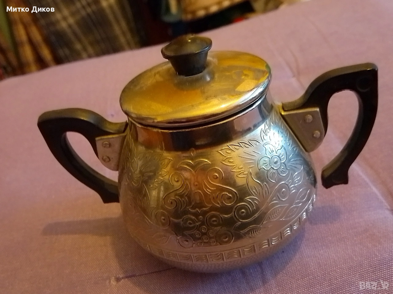 Захарница молокница метална СССР от соца с дръжки гравирана → Обява 53499097